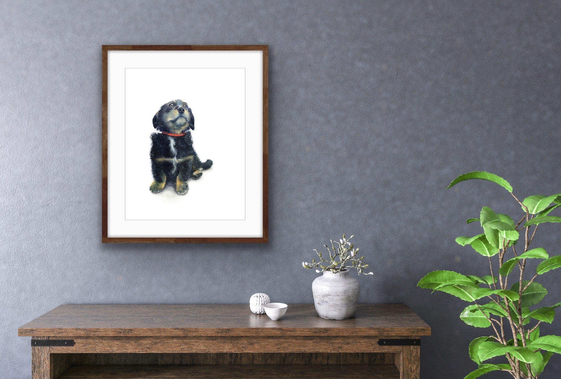 Puppy with Red Collar, Fine Art Giclee Limited Edition Print