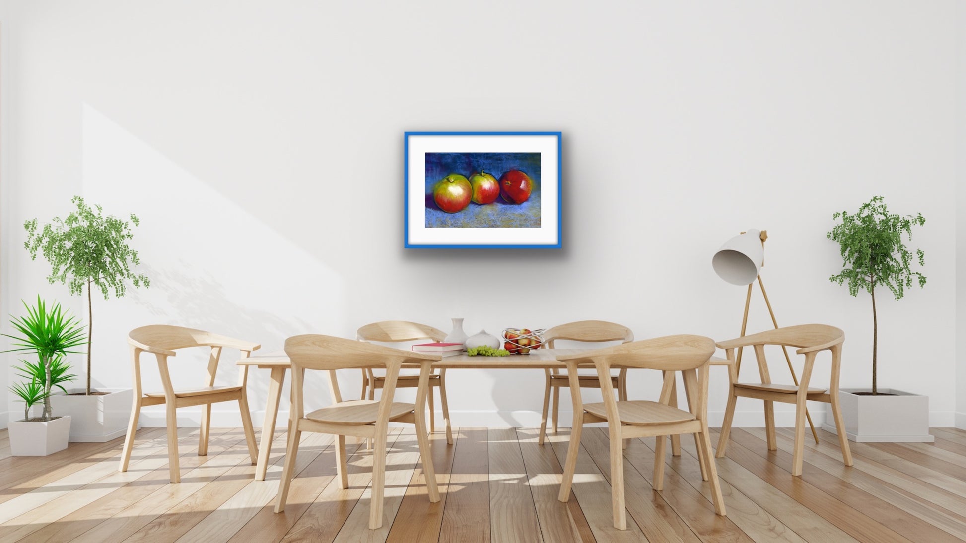Three Apples on Blue, Fine Art Giclee Limited Edition Print